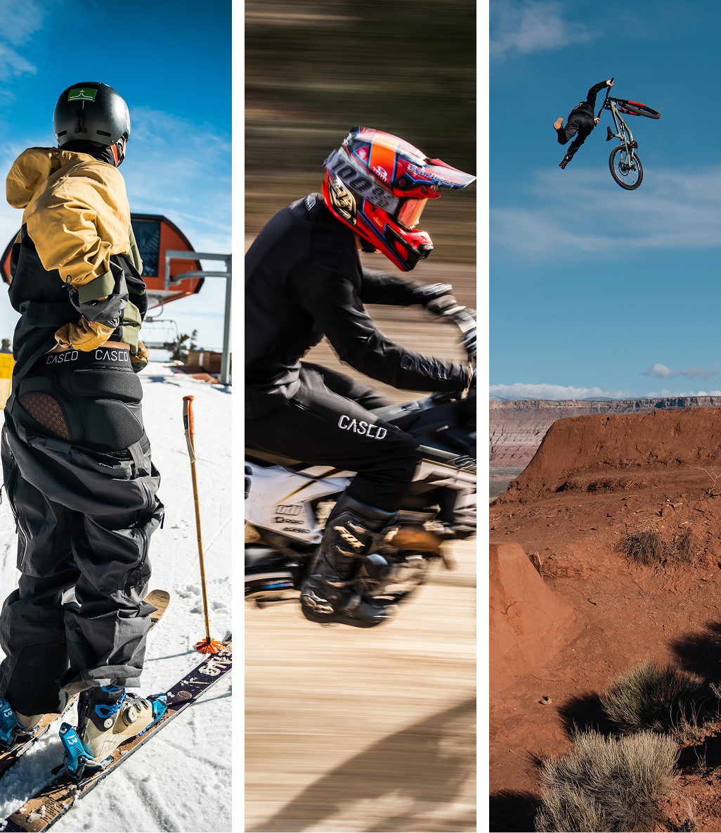 Riders trust Cased gear to stay comfortable, breathable, and durable across multiple sports and conditions.